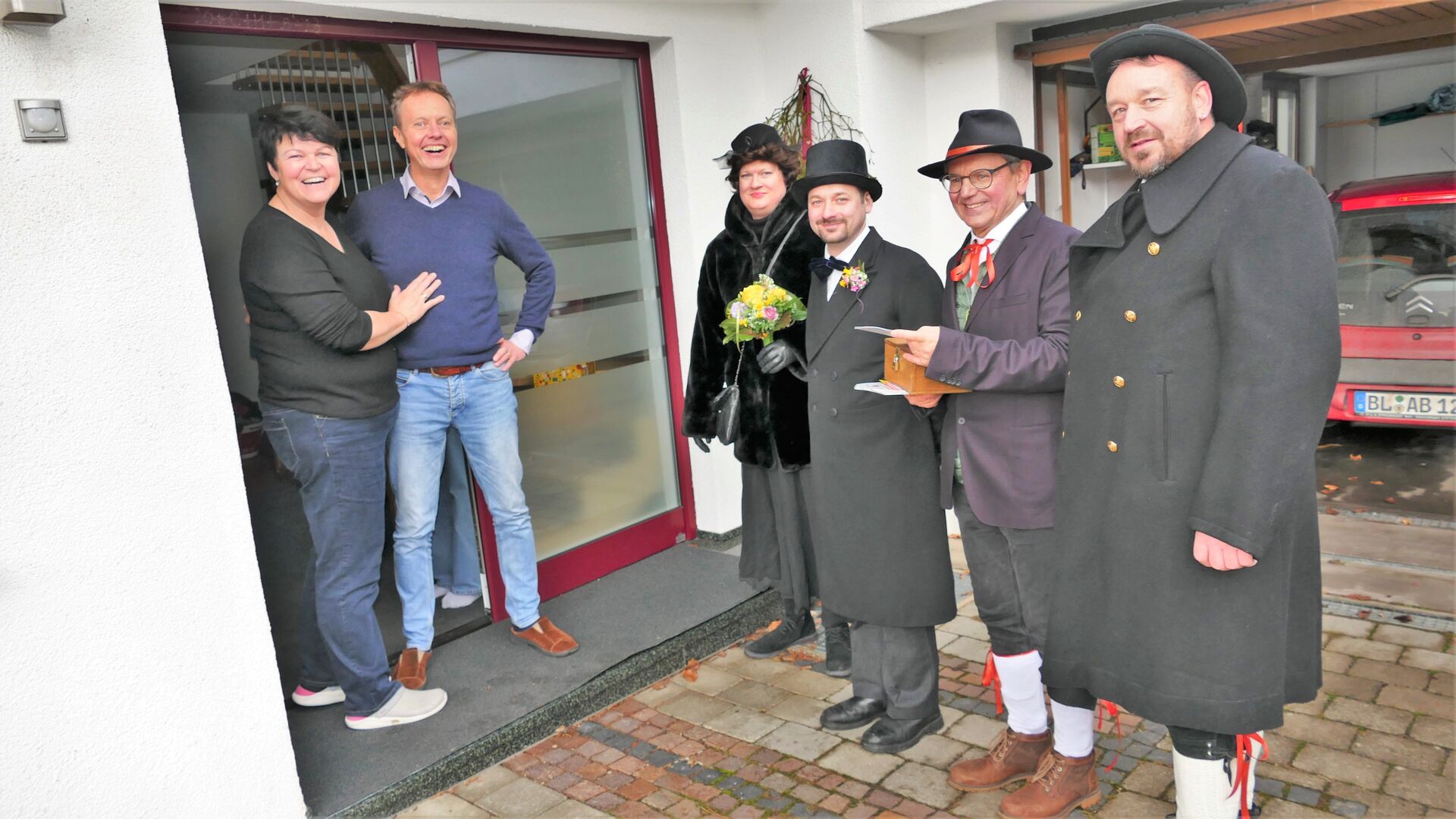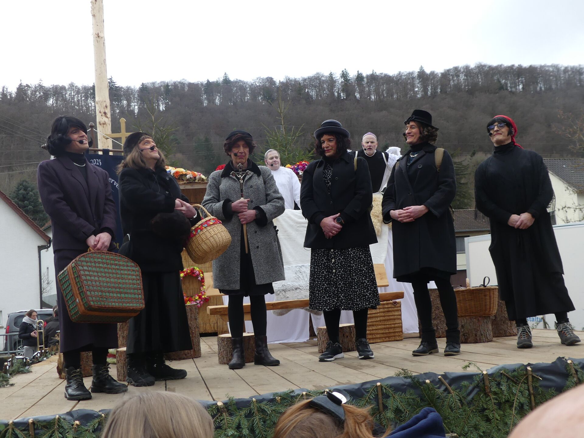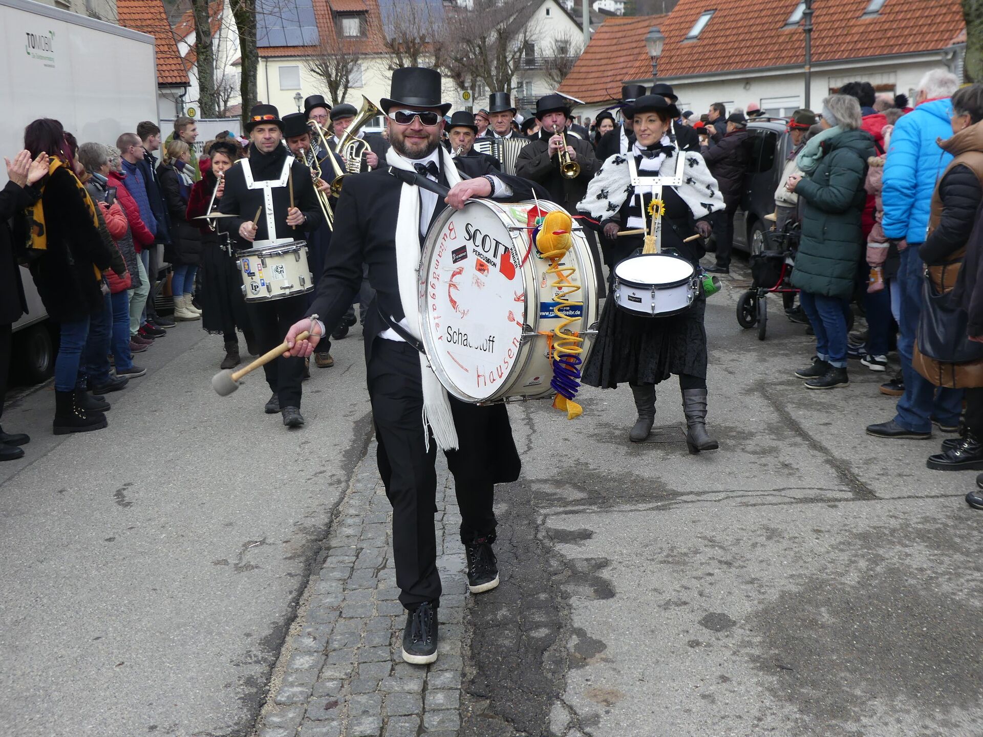 Dann zogen sie los und klingelten (fast) an jeder Haustüre. Unter den Kassenbuben der Europaabgeordnete Andreas Glück, die Landtagsabgeordneten Rudi Fischer, Manuel Hailfinger und Joachim Steyer, Bürgermeister Davide Licht, der Chefredakteur des Schwarzwälder Boten Constantin Blaß sowie Priester Klaus Käfer, Diakon Ralf Rötzel, der Rektor des Progymnasium Johannes Heß, der erste Beigeordnete Berthold Wiesner und Peter Spallinger der Ortsvorsitzende des DRK. Nach dem Frühstück trafen sich alle vor dem Fasnetsspielwagen.